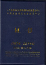 中华人民共和国人力资源和社会保障部职业技能鉴定中心“OSTA国家级汉语教师认证考试”证书封皮和内页: