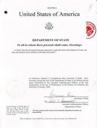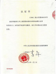 中国驻美使馆及美国国务院对此证书的认可鉴定文件书: