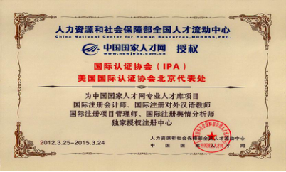 IPA国际注册汉语教团队格认证获国家人社部全国人才流动中心、国家人才网授