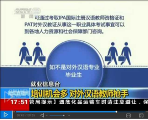 http://www.dwhy123.com/showfull1.asp?id=18411、中央二套《第一时间》关于IPA国际注册汉语教团队格认证的相关报道链接,汉语热引发汉语教师考证热