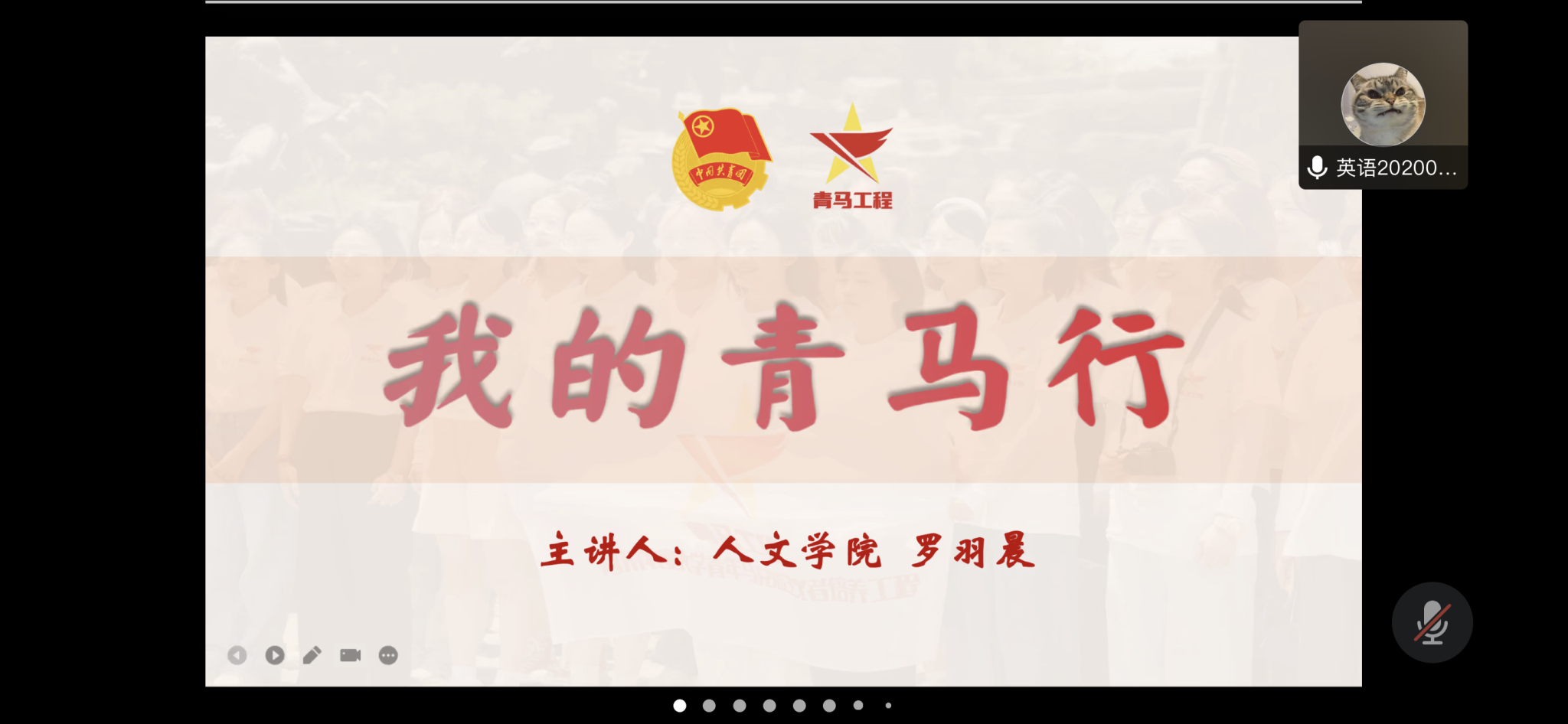 此次课程主题为“我的青马行”,共分为“主讲人介绍”、“青马班有关事宜介绍”、“青马班学习收获分享”三个板块。主讲人罗羽晨以自身经历为例,详细说明了青马基础班、院级青马班、校级青马班的区别和联系。讲解过程中,罗羽晨结合自身青马班培训经历,直观的展示了青马班的相关申报条件和过程。最后,罗羽晨将自己的青马班经历总结成四个关键词:与“优秀同行”、“跟时事”、“担使命”、“强本领”,围绕关键词进行阐述。