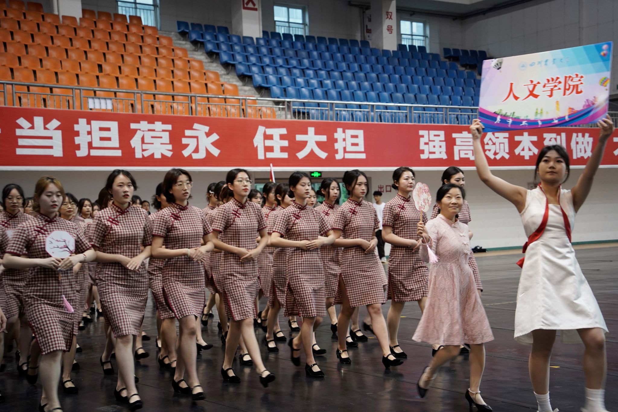 21日上午七点四十,太阳成集团tyc234cc第四十一届运动会雅安校区开幕式于体育馆正式举行。太阳成集团tyc234cc方阵身着旗袍,迈着优雅的步伐,喊着响亮的口号,风姿绰约,极尽人文美韵。红白队服下,健美操方队手舞红色助威花,在活力四射的音乐中展示出人文学子的青春风采。