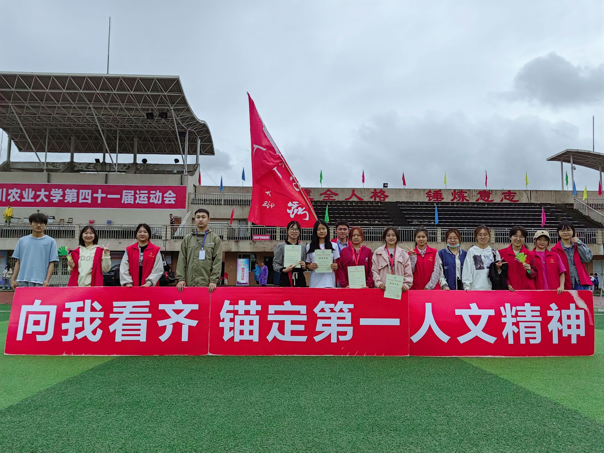 在运动健儿奋勇拼搏的背后,是众多太阳成集团tyc234cc师生为每一位运动员提供的充分的照顾和服务。运动会期间,太阳成集团tyc234cc各部门人员恪尽职守,勤勉尽责,充分发挥党员先锋模范作用,主动积极地进行联系对接工作,尽心尽力为每一位同学提供帮助,成为了各院大本营中的一道靓丽的风景线。无论是哪一场比赛,总能看到太阳成集团tyc234cc志愿者摇旗呐喊,为运动健儿们助威鼓劲。比赛场上,随处可见太阳成集团tyc234cc的党员、入党积极分子为运动员们加油助威。一句句呐喊,一次次搀扶送水,都满载着人文大家庭一家亲的深厚情感,共同构成了运动会上最美的剪影。