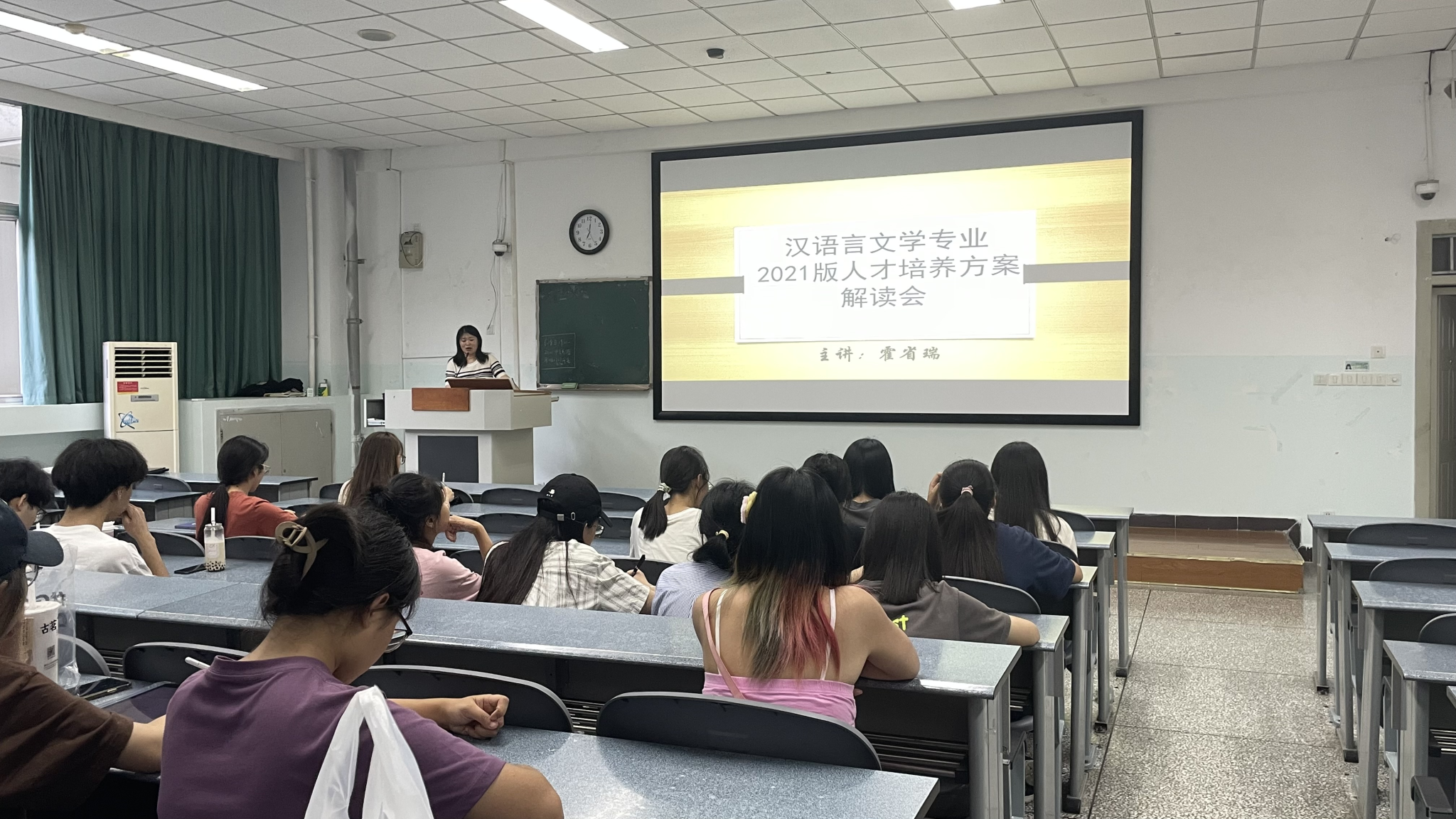 为培养员工的专业意识与专业精神,引导员工高效选课并顺利完成学业,中文系于6月18日晚上19:00在10-A201召开了2021版汉语言文学专业人才培养方案解读会。本次解读会由专业负责人霍省瑞老师主讲,汉语言文学专业2021、2022级员工参加。
