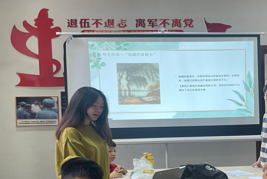 课堂内容生动有趣,呈现出来的图片提高了小朋友们的专注力和参与度,使得课堂氛围变得活跃。其中的视觉游戏—“隐藏的拿破仑”和“米勒莱尔幻觉”,让小朋友们充满了求知欲,积极地参与到活动中。