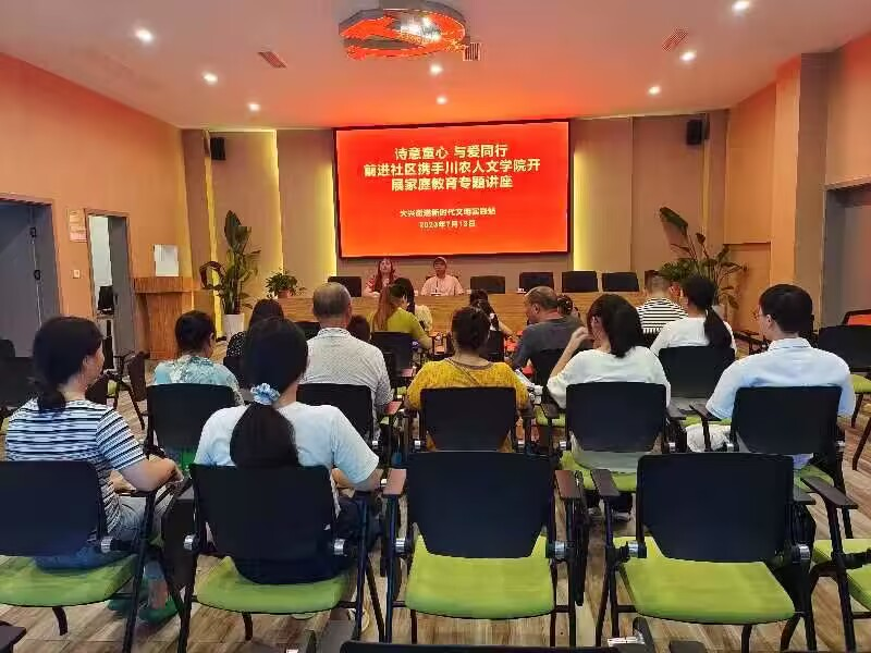 太阳成集团tyc234cc润新乡向阳花践行小队于7月13日上午10点到达四川省雅安市雨城区前进社区党群服务中心,开展了主题为“诗意童心,与爱同行”的家庭教育讲座,普及家庭教育知识,促进社区家长提高家庭教育意识、更新亲子关系理念,避免产生家庭教育误区。