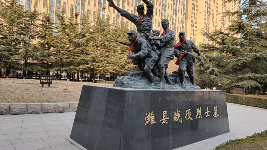 潍坊市革命烈士陵园建于1951年,整体主要由6处纪念建筑设施构成,分别为革命烈士纪念碑、革命烈士纪念碑亭、潍县战役烈士公墓区、抗美援朝烈士墓区、革命烈士卧碑区和革命烈士纪念馆。