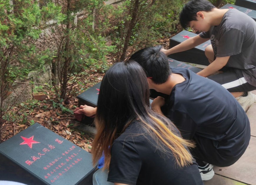 时时勤拂拭,勿使染尘埃。擦拭过程中不少成员眼角微微湿润起来,拂去的是烈士墓碑上表面的灰尘,而带来的是革命先辈们用自身生命捍卫和诠释的精神信念。年轻一代接过前人的火炬,爱国革命精神必将永垂不朽。