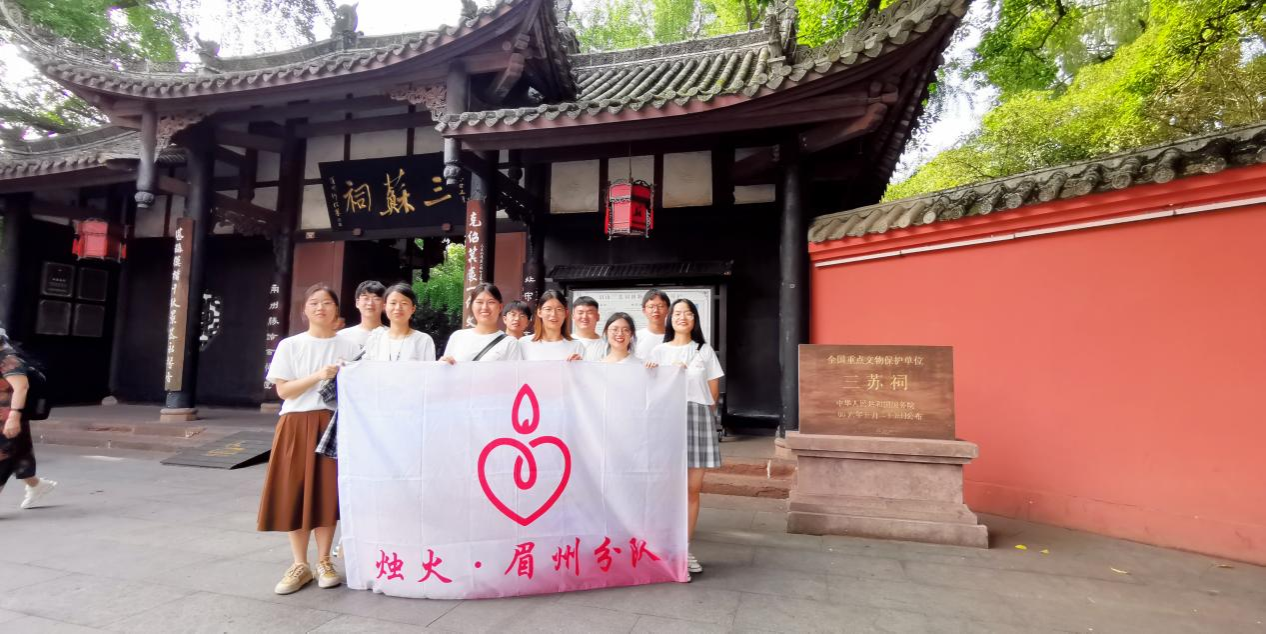 下午3时30分,“烛火·眉州”支教团的成员们来到北宋著名文学家苏洵、苏轼、苏辙父子三人的故居三苏祠,了解三苏生平、主要文学成就和家训家风,学习三苏祠的历史沿革与东坡文化研究传承。