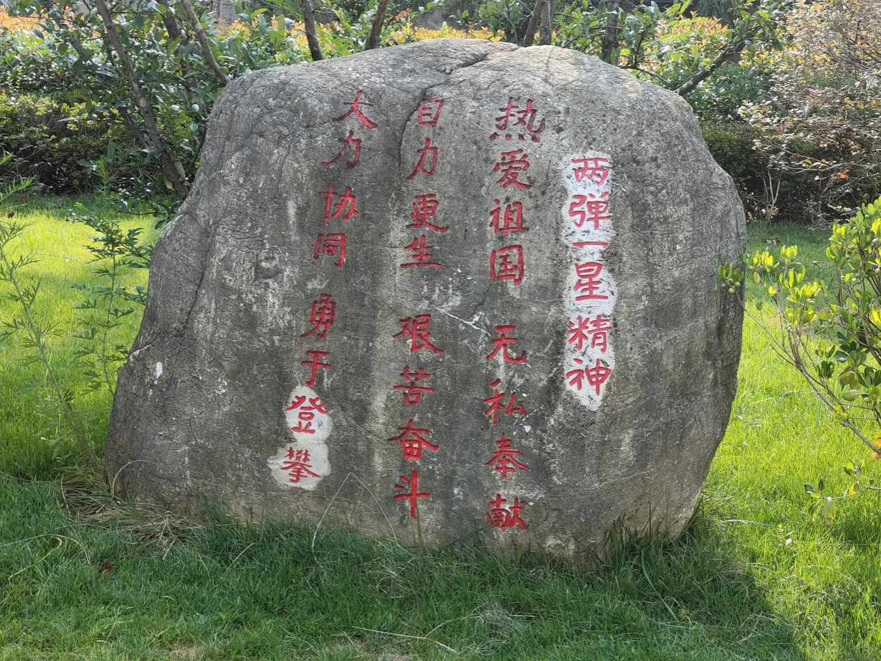 路旁的石头上镌刻着“热爱祖国、无私奉献、自力更生、艰苦奋斗、大力协同、勇于攀登”的两弹一星精神,这是隐姓埋名于此的众多科学家一生的真实写照。