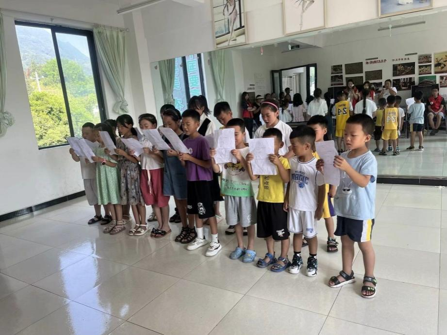 结营仪式的最后一个环节中,小朋友们集体合唱歌曲《山脚那个家》。音乐响起,稚嫩的童声飘荡在文化站的每一个角落,让人十分动容。此次志愿服务活动也在孩子们的歌声中落下了帷幕。