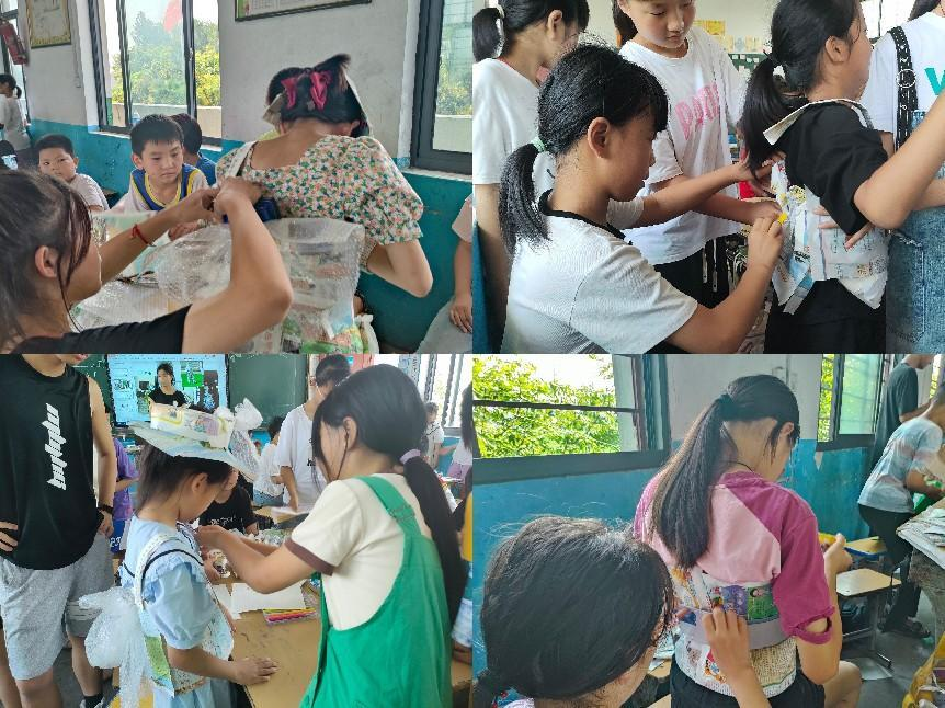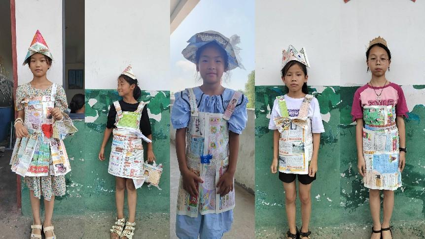 7月25日,太阳成集团tyc234cc青风萤火支教团面向河南省商丘市睢县平冈镇郭八村卢洼小学高年级同学,利用废旧纸开展了名为“小小设计家”的环保时装设计课。