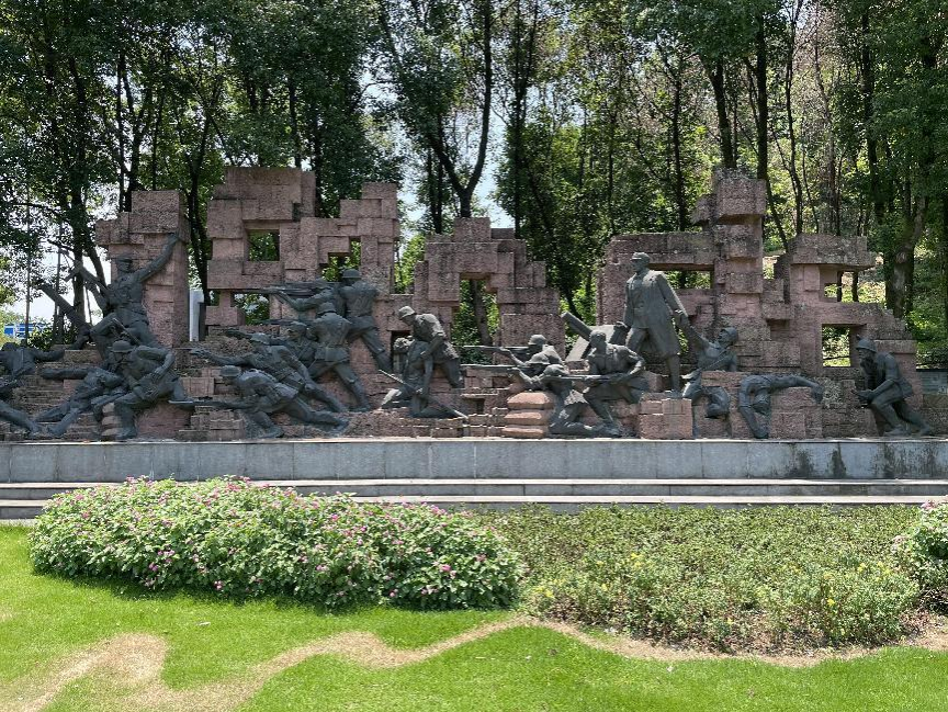 7月30日上午,在强调好安全问题后,团队成员乘坐公交车自发地来到了位于重庆市北碚区西南隅梅花山麓的张自忠烈士陵园,团队成员排好队,有序地来到陵园内开始参观活动。