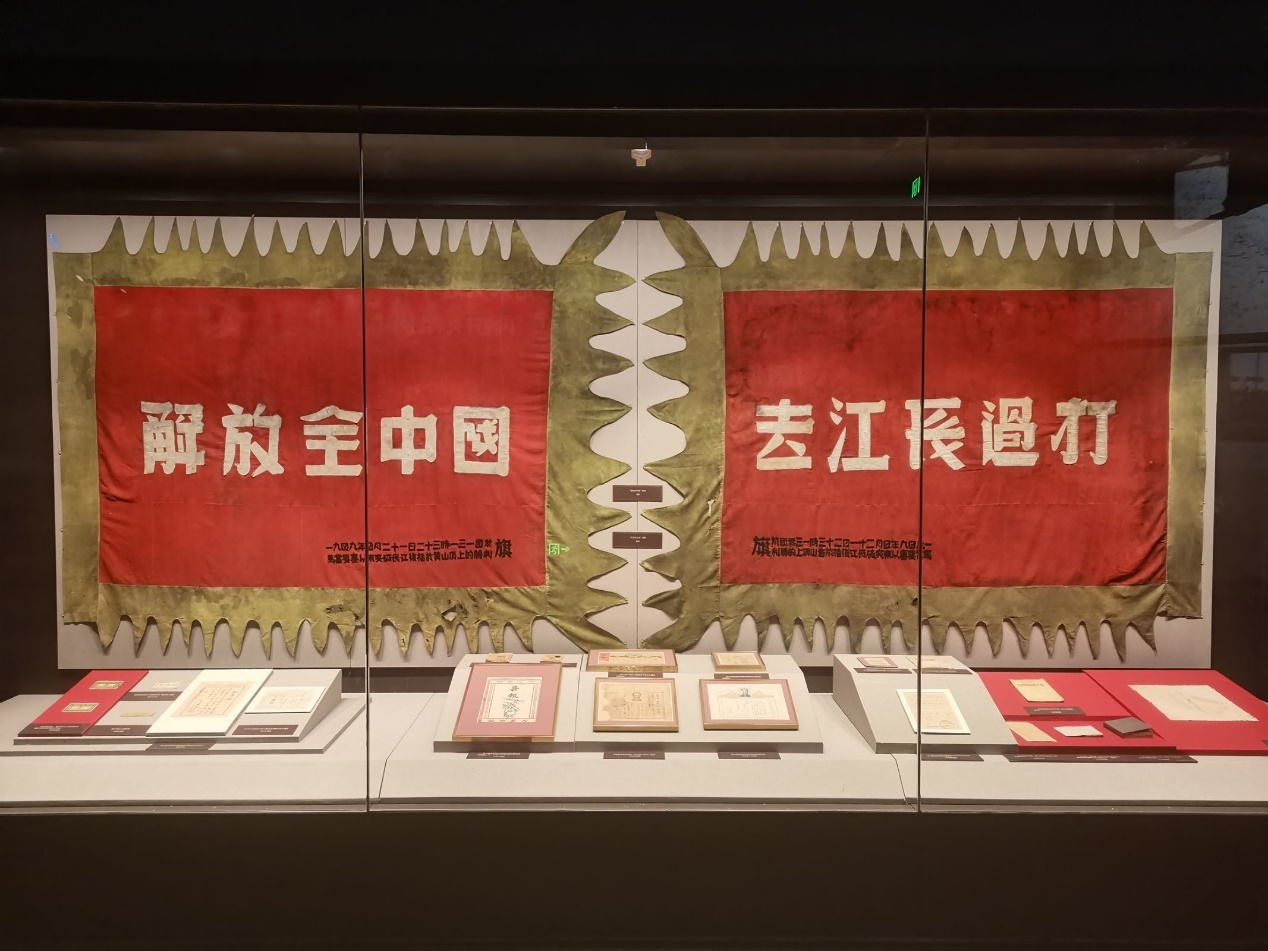天若有情天亦老,人间正道是沧桑。在纪念馆大厅内,有着毛主席亲手题笔的《七律·人民解放军占领南京》诗句,其中一句“宜将剩勇追穷寇,不可沽名学霸王”,不仅为这座有着重大历史背景的革命纪念馆增添了几许诗情画意,更是对“将革命进行到底”的渡江精神的高度褒扬。