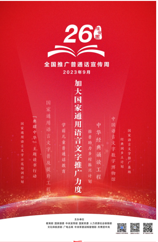 2023年9月,我们迎来了全国第26届推广普通话宣传周。今年宣传周的主题是:“推广普通话, 奋进新征程”。