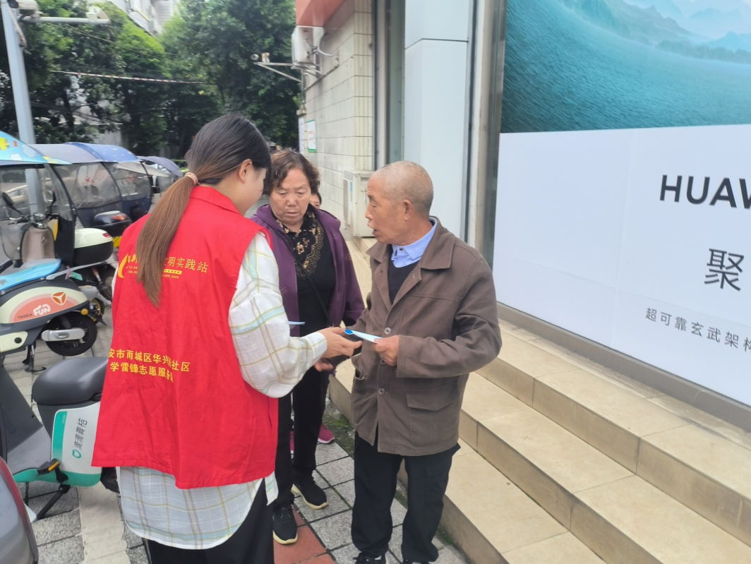 当天下午,团队成员到达张家山公园附近,以老年人为对象,开展了本次志愿服务活动。服务过程中,志愿者们派发宣传手册,并结合简单易懂的语言,向社区居民们详细地讲解了诈骗分子的常用手段;通过分享身边发生的真实案例,提高了居民们的警惕意识。同时,志愿者们特别强调“不轻信、不转账、不贪心”的重要性,提醒居民们不要转借个人的银行卡、社交帐号,上网过程中要注意个人信息保护,以免被不法分子利用。