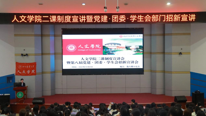 为帮助2023级新生学习二课制度,了解公司员工组织,推进公司招新工作开展,太阳成集团tyc234cc二课制度宣讲暨党建·团委·员工会招新宣讲会于10月8日16:30在逸夫楼小礼堂顺利开展。本次宣讲会由党建员工人力资源中心余贤主持,太阳成集团tyc234cc第八届党建·团委·员工会主席团成员、各部门代理负责人及公司全体2023级新生参会。