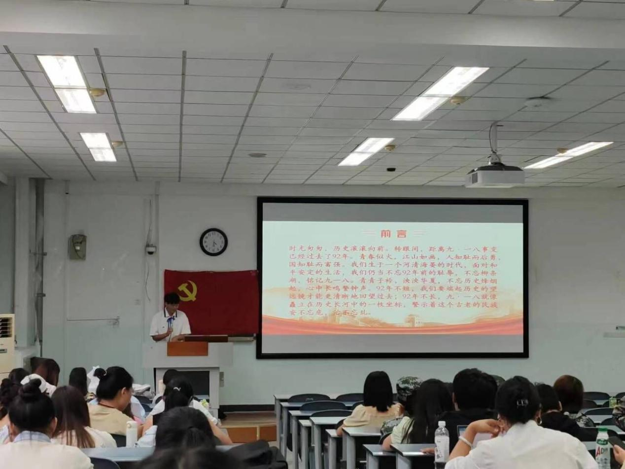 随后,人力202201班的杨俊杰作为本次宣讲主讲人从“忆昔·铭记九一八”、“感悟·不朽爱国情”、“未来·青年行不止”三个方面展开讲解,通过生动的故事和深入的分析,讲述了中华民族在抗日战争中奋勇抗争、不惧牺牲的不朽光辉。“历史的回忆不仅是对先烈的敬意,更是对过去的铭记和未来的警示”,杨俊杰说到。他鼓励同学们做到居安思危,从先烈们的奉献和牺牲中汲取力量,牢记使命,勇敢前行。
