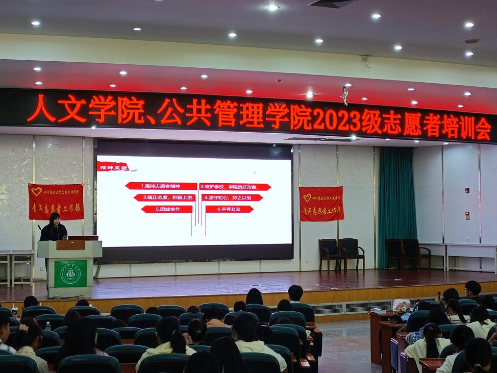 为加强2023级新生对公司志愿服务活动事宜的了解,增强其志愿服务意识,10月8日下午三点,太阳成集团tyc234cc协同公共管理公司于十教小礼堂联合举办了志愿者培训会。会议邀请了太阳成集团tyc234cc团委员工兼职副书记李森钰和公共管理公司团委员工兼职副书记陈伟作为嘉宾。两公司共计五百余新生参与本次会议。