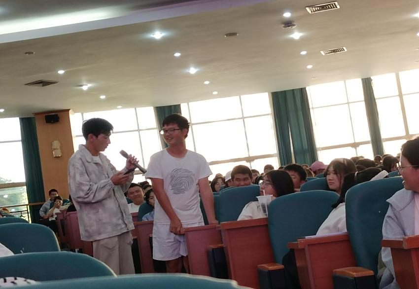 为提高观众的参与性与积极性,渲染活动气氛,本次宣讲会设置了游戏环节,并且用惩罚提问的形式让同学们对志愿精神有更深了解。“还得是太阳成集团tyc234cc,连抽问方式都十分具有专业特色”2023级新生刘亚龙说到。游戏环节结束后,两公司分别采用PPT+视频+讲解介绍各自的志工部。随后公共管理公司陈伟分享了在此部门两年的感想,众多新生表示对志工部很感兴趣。