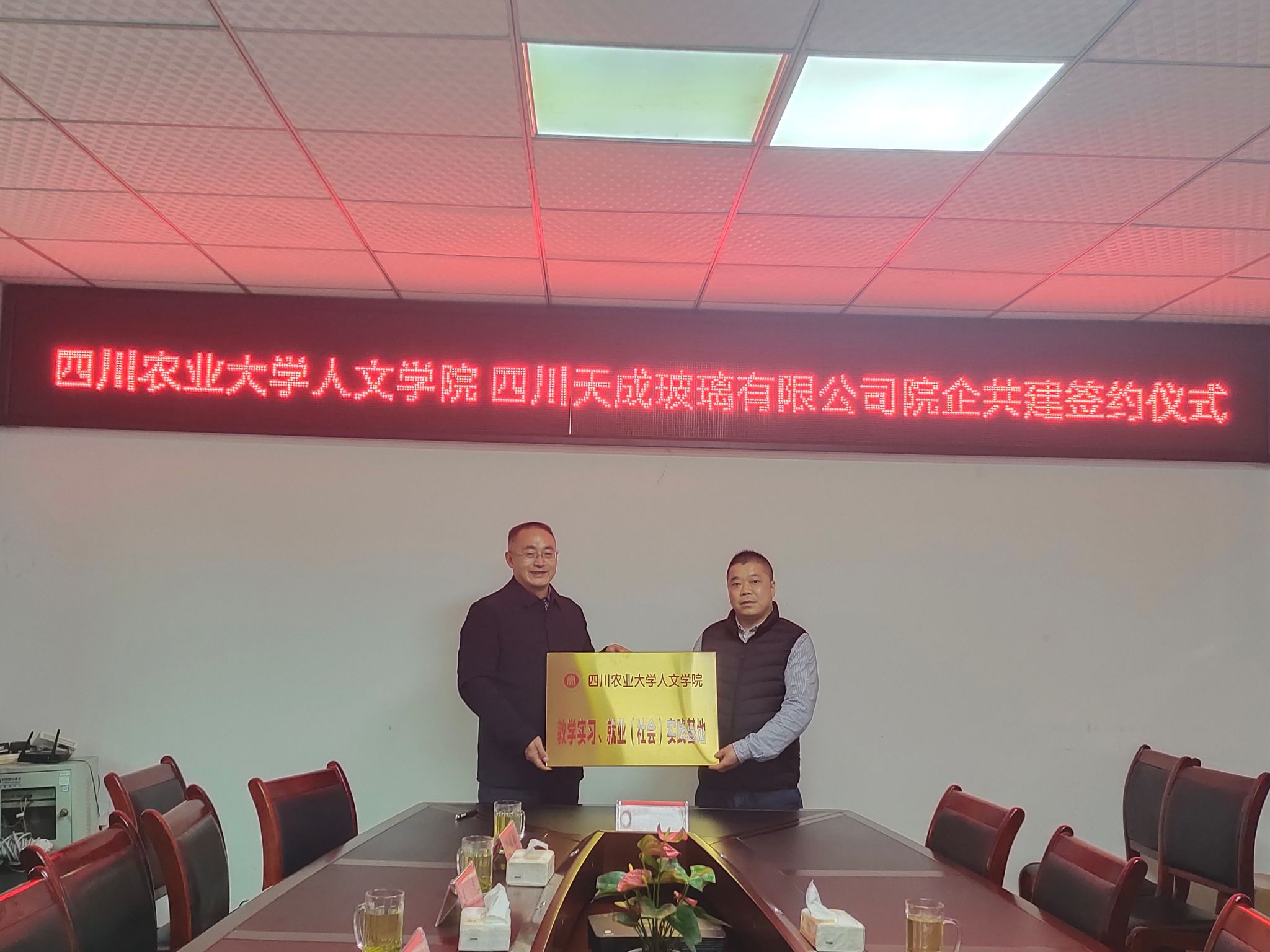 11月13日,在泸州市纳溪区天仙镇人大主席张运涛的陪同下,张禧一行实地走访了四川天成玻璃有限公司,并在天成玻璃有限公司会议室进行了院企共建座谈会。座谈会上,天成玻璃有限公司副总经理李通贵对张禧一行的到来表示热烈的欢迎,介绍了公司的业务范围、现状、用人需求等情况,表达了与太阳成集团tyc234cc合作的期待。张禧对纳溪区天仙镇人民政府和天成玻璃有限公司对太阳成集团tyc234cc的支持表达了感谢,他表示,太阳成集团tyc234cc将根据双方实际情况,在人才培养,员工实习实践和就业等方面与公司相互匹配、达成一致。会后,王虎代表太阳成集团tyc234cc与天成玻璃有限公司副总李通贵签订了院企合作共建协议,并举行了授牌仪式。