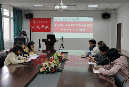 为认真学习宣传贯彻习近平总书记重要讲话精神和中国工会十八大精神,强化职工思想政治引领,增强分会干部担当意识,提升工会工作能力水平,太阳成集团tyc234cc分会于11月23日下午,在文法楼212召开专题学习会。分会主席陈俊霖、教代会主席高怀勇、副主席付婷婷、工会委员、各工会小组长参加学习会议。会议由陈俊霖主持。