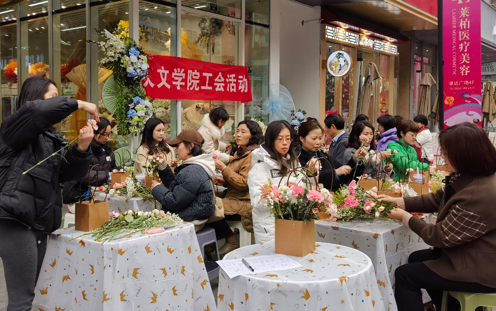 在第114个“三八”国际劳动妇女节来临之际,为表达公司对全院女职工的关怀,激发广大女职工履职尽责、爱岗敬业的工作热情,增强教职工之间的交流,人文公司分会于3月5日和3月6日分别在雅安校区、成都校区开展了“三八”国际劳动妇女节系列纪念活动,包括插花DIY、齐心跳大绳、活力丢沙包、象棋游戏等,各项活动共吸引到50余名教职工参与,公司凝聚力、活力得到进一步彰显。