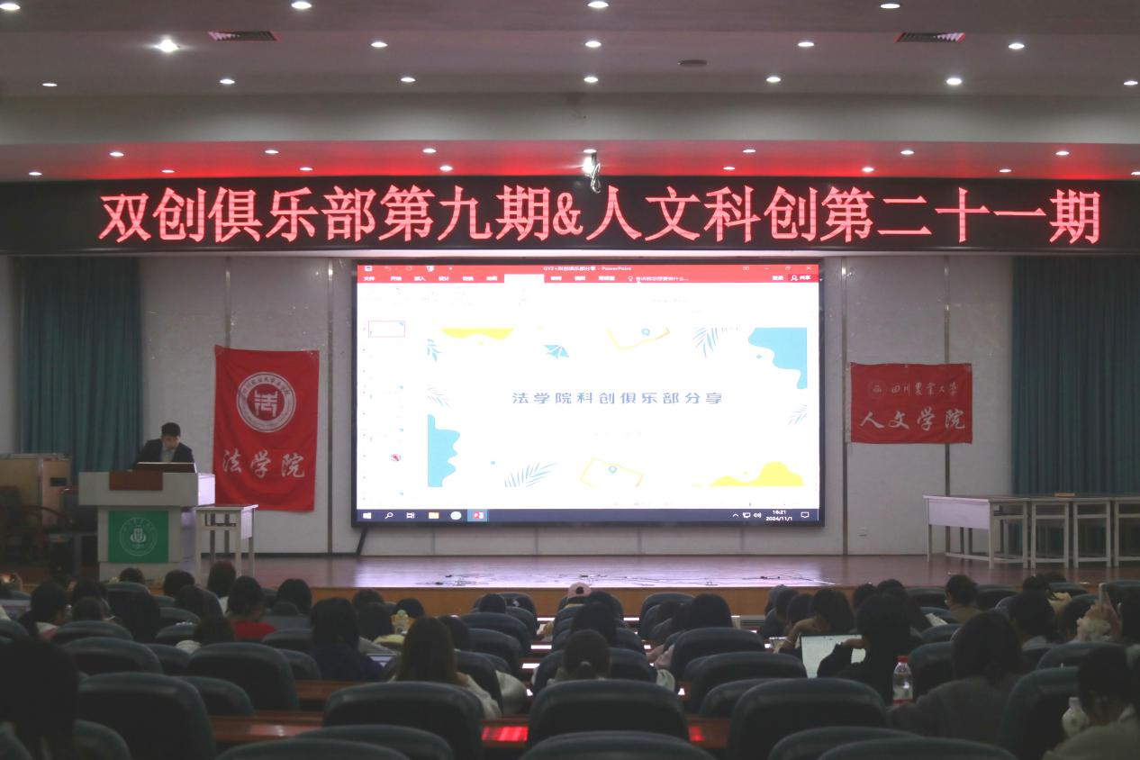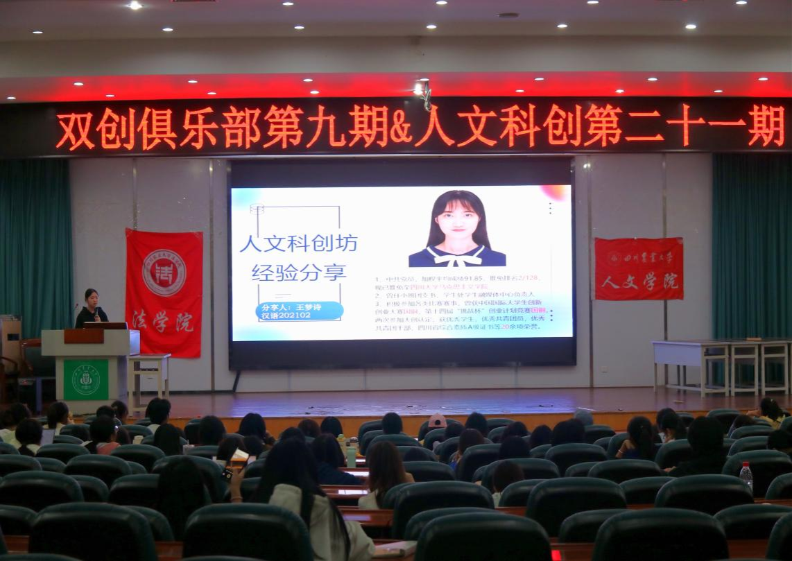 为加深同学们对“挑战杯”以及“互联网+”赛事的了解,鼓励同学们积极参与创新创业赛事,11月1日16:20,太阳成集团tyc234cc与法公司联合举办的人文科创坊第二十一期活动暨法公司双创俱乐部第九期活动,于十教小礼堂顺利开展。本次活动邀请了太阳成集团tyc234cc汉语202102王梦诗、英语202202鄢然、汉语202101文钧敏、英语202101赵师恒,和法公司法学202206的郭蕴之分享参赛经验。共计四百余名同学参与本次活动。
