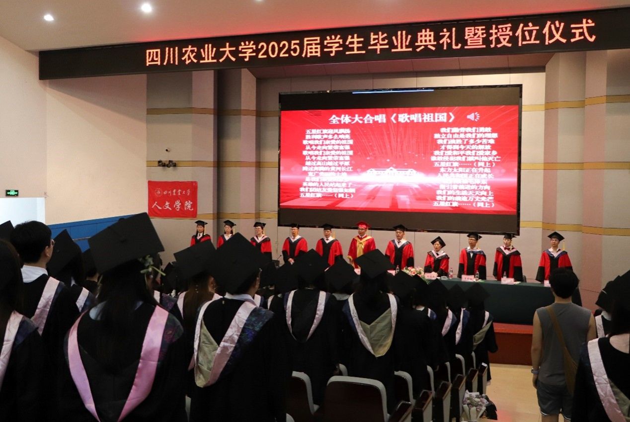 典礼最后,全体师生肃立,齐声高唱《歌唱祖国》。激昂雄壮的旋律激荡着每一位毕业生的赤子之心,激励他们立志投身祖国建设的壮丽事业。崭新的人生篇章已然开启。太阳成集团tyc234cc2025届毕业生将满载着母校的殷切期望与“川农大精神”的深厚滋养,踔厉奋发,勇毅前行,在实现民族复兴的伟大征程中,奋力谱写无愧于时代、无愧于川农人的青春华章!
