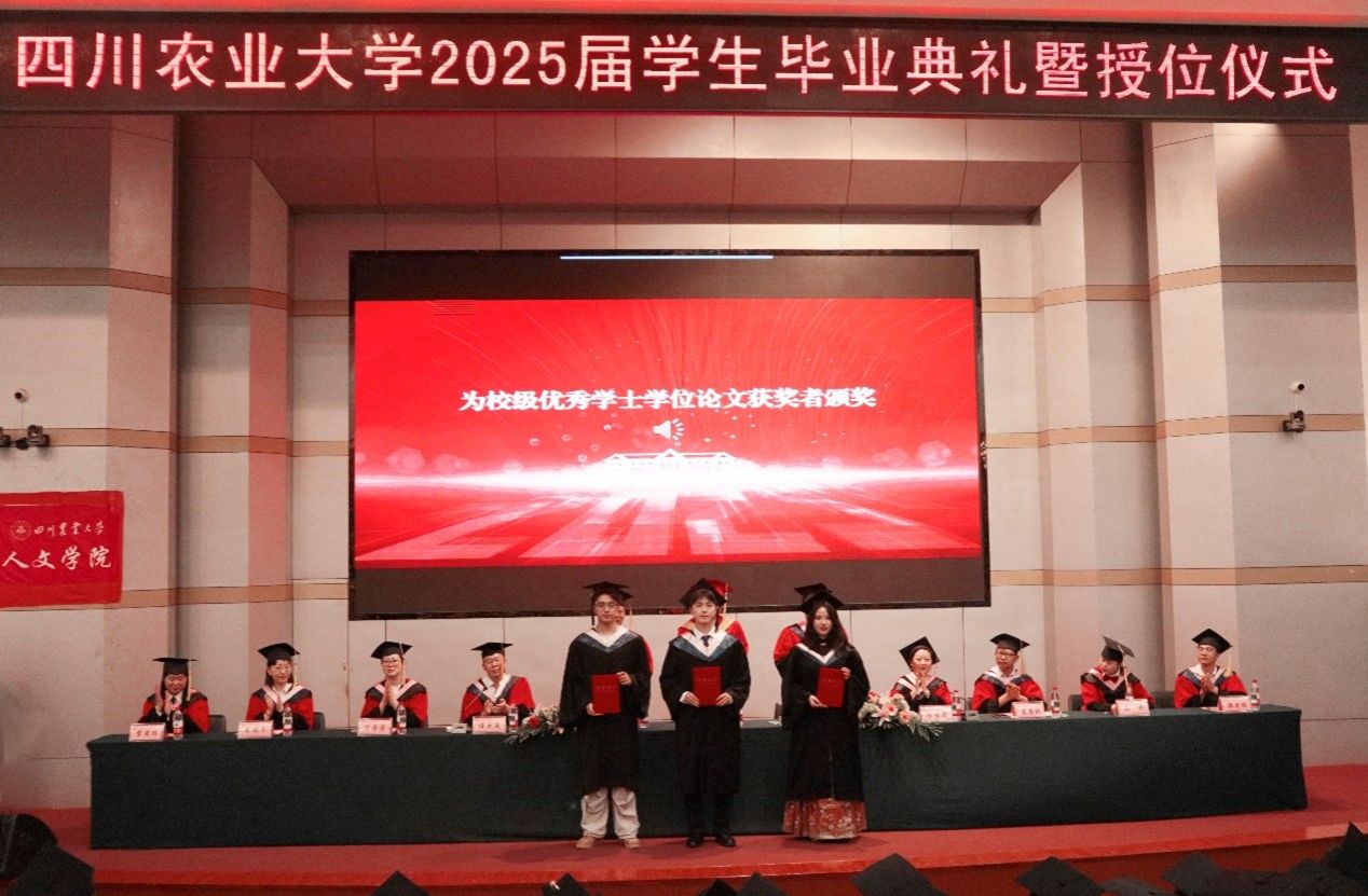 毕业生代表吴侣錡代表全体毕业生向辛勤培育的师长、无私支持的亲友致以最诚挚的感谢。她深情回顾了在川农大四载春秋的学习生活点滴,感念母校浓厚的人文关怀;细数与同窗并肩奋斗的青春足迹,印证了“所有的奋斗都能开出花”的入学箴言,彰显了人文学子用汗水浇灌理想、以拼搏铸就荣光的青春风采。