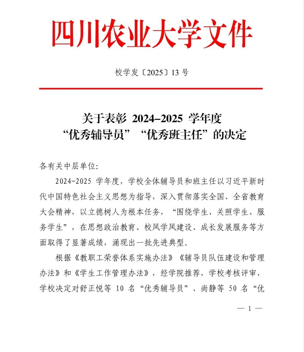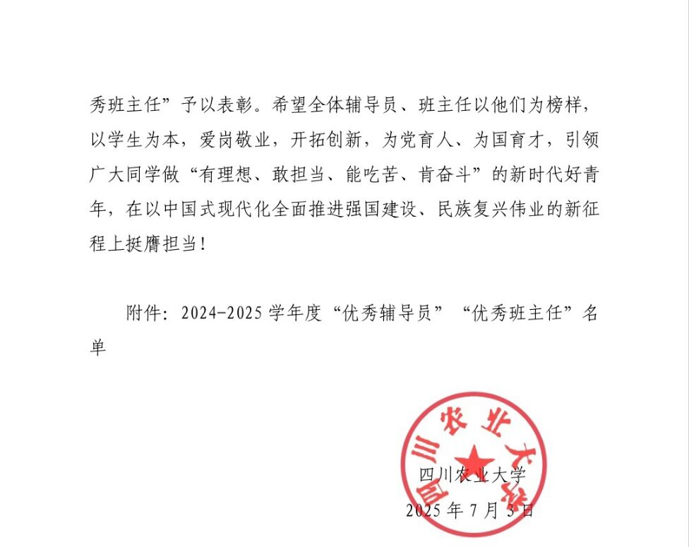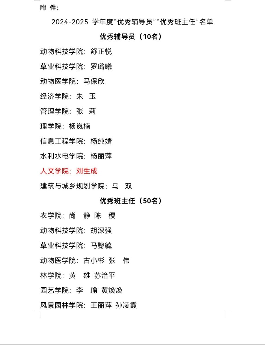 近日,公司发布《关于表彰2024-2025学年度“优秀辅导员”“优秀班主任”的决定》(校学发〔2025〕13号),公司教师喜获两项荣誉:公司党委办公室主任、团委书记刘生成获优秀辅导员,英语系系主任助理罗敏获优秀班主任。