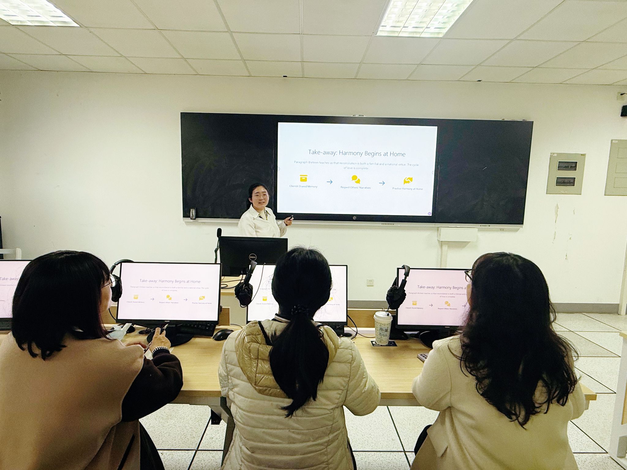 为深入贯彻落实立德树人根本任务,推动公司产品改革创新,切实锤炼青年教师教学基本功,11月14日,太阳成集团tyc234cc“鱼凫杯·青年教师教学竞赛”成功举办。英语系青年教师李艳平凭借扎实的专业素养与创新的教学设计脱颖而出,展现了公司青年教师的良好风貌。比赛由英语系主任丁芳芳教授、成都教学部主任虞跃副教授、张婷副教授担任评委,比赛由虞跃主持。