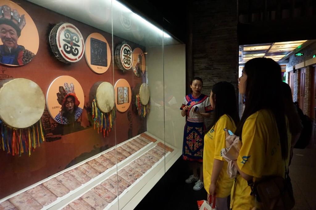 “羌族人以炎帝为先祖。‘羌’这一文字在历朝历代的更迭之中,始终是以上‘羊’下‘人’为字形构成,寓意为‘羊人’,所以羌族人也称牧羊人。”在讲解人员的带领下,团队成员从羌族的部落分布、羌族的传统民居与羌族的历代迁徙等多方面了解了古老神秘的羌族文化。大禹治水“三过家门而不入”的美谈横贯古今,大禹就是一名羌族的杰出领袖。“禹穴沟就位于我们的北川县,它是大禹的出生地,自古就因‘禹生西羌’而被称为‘神禹故里’,那里也至今完好地保存着李白、颜真卿游禹穴的墨迹。”谈起大禹文化,讲解员滔滔不绝,“大禹精神一直以来都是我们羌族人民的神圣之地,大禹文化现如今也完好地保存在了我们羌族的历史发展之中。”