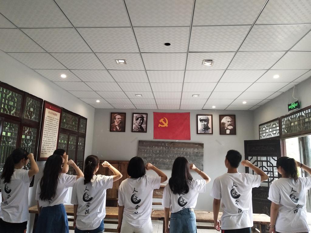 在他们离开以后,成员们就开始组织起了团队的党日活动。在参观完红军大学、听队长讲述红军村的发展故事之后,队员们在一间教室里齐唱《国际歌》,重温入党誓词,并在队长的带领下队员们都分享了自己的入党动机,最后还开展了几个破冰游戏。