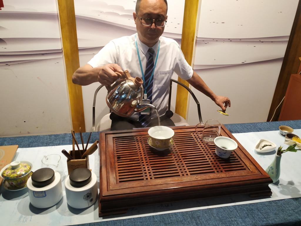另一位师傅则演示了如何正确地冲泡蒙顶茶。师傅摆好专业的茶具,用娴熟的手法展示了专业的泡茶过程。他还告诉队员们“先烫杯,再取茶入杯,其后待冲泡后可闻香。”随后,在工作人员的指导与鼓励下,全队成员参与并体验了茶的泡制,在实际操作中更深入地领略了泡茶的乐趣与雅致。队员与工作人员在芳香四溢的茶香中愉快地交谈,最后懂得了更多关于茶的知识。