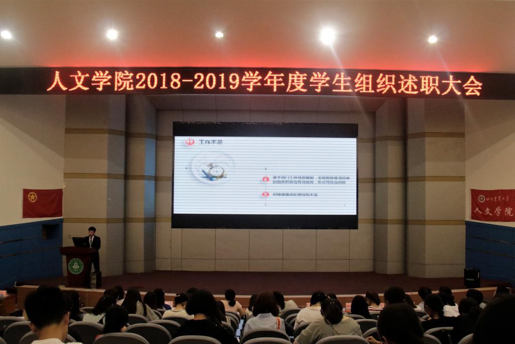 为了让人文学子更深入地了解员工组织的职能,促进员工组织工作的完善,4月26日晚7点,太阳成集团tyc234cc于逸夫楼小礼堂开展了2018-2019学年度员工组织述职大会。本次会议邀请公司党委副书记杨仕元,党委办公室主任陈俊霖,党委办公室老师李娜、陈敏担任嘉宾,第三届团学组织主席团及中心主任团,太阳成集团tyc234cc团学组织各部门成员及各中心成员到场参与并观看答辩。