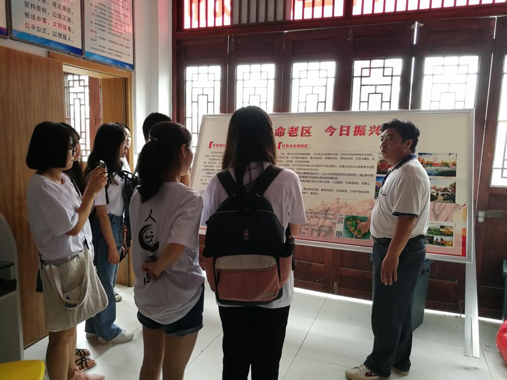 团队成员初到红军村时队员们便受到了红军村村委的热情接待。为了解红军村村庄概况,调研小分队采访了村党委书记高大林。通过高书记的介绍,队员了解到红军村在“村规民约”、“垃圾分类与回收”等村容村貌整治问题上采取的具体措施;村委会结合“七五”普法教育,开展法律七进活动,在红军村红色文化教育基地引入“法治教育长廊”,不断强化村民们的法治教育等。