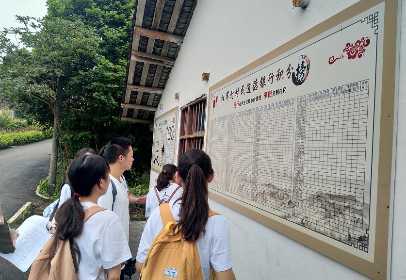 为了践行社会主义核心价值观,培养好风气、好习惯,提升村庄的整体风貌和村民的道德素养,红军村引入了银行管理理念,开展“道德银行”建设活动。高书记介绍,“道德银行”围绕律己守法、移风易俗、清洁卫生、创业创富、敬老爱亲五个方面进行开展。在“道德银行”条例中分列出25个加分项:见义勇为、支持建设、帮助困难群体等和30个扣分项:乱扔乱倒、私搭乱建、大操大办、迷信活动等。每个月村民都会以家庭为单位自主申报积分事项,随后评定小组召开会议对照评分细则进行评定,将相应积分存入每户村民在“道德银行”的“户头”,每季度进行一次积分兑换,将积分变成实实在在、看得见的奖品,年终再根据积分累计情况,评定出道德家庭、一般家庭及帮扶家庭,并从道德家庭中评选出五户幸福家庭。据走访调查,在实施了《道德银行积分管理办法》后,村民的精神风貌和道德素养得到了极大的提升,村里互帮互助的情况增加;村民学会自觉地保护环境、爱护环境;邻里之间争吵变少,大家相处愈发和谐;村民在乡村建设中参与度明显提高……