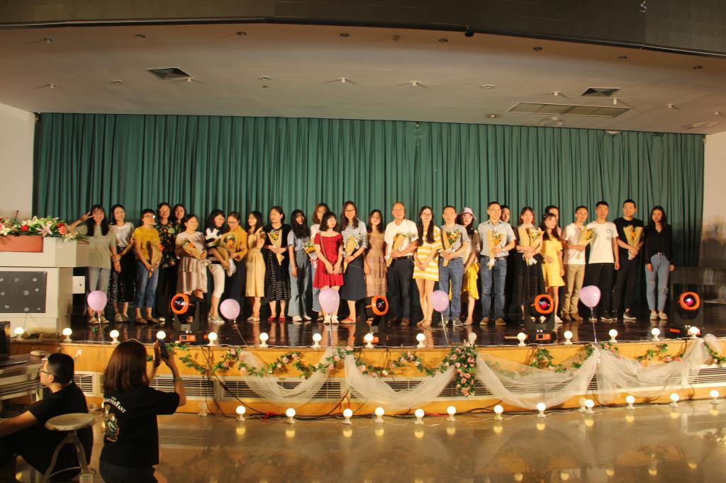 在晚会接近尾声时,老师登台接受毕业生代表献花,一束束精美的鲜花不仅承载着同学们对公司的爱意与不舍,也承载着人文师生至深至厚的桃李之情。