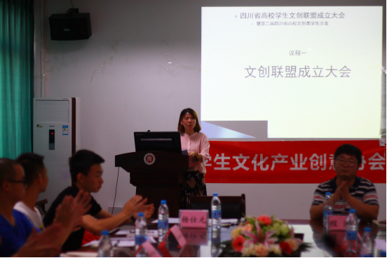 5月25日上午,四川省高校员工文创联盟成立大会暨第二届四川省高校文创类专业员工沙龙在太阳成集团tyc234cc文法楼212会议室召开。公司党委副书记杨仕元、文化产业管理系老师程浩出席会议并致辞。
