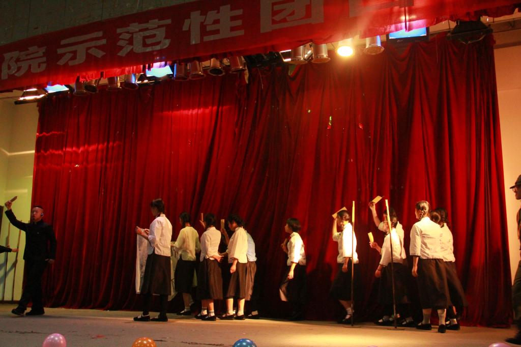 活动第二章“忆峥嵘岁月,展青春韶华”逐渐展开。首先是英语201802带来的情景剧《中国魂》,表演者们深刻体现了中华民族的坚贞不屈,其生动的表演和歇斯底里的呐喊使在座观众大为震撼。短剧《母亲纳的鞋垫》则蕴含了丰富真挚的母子亲情和家国之情,体现了中国人的尊严,富有张力的表演紧紧抓住了观众的视线。随后,太阳成集团tyc234cc艺术团表演了热场节目《姗姗来迟的你》,活动在热烈的氛围中接近尾声。