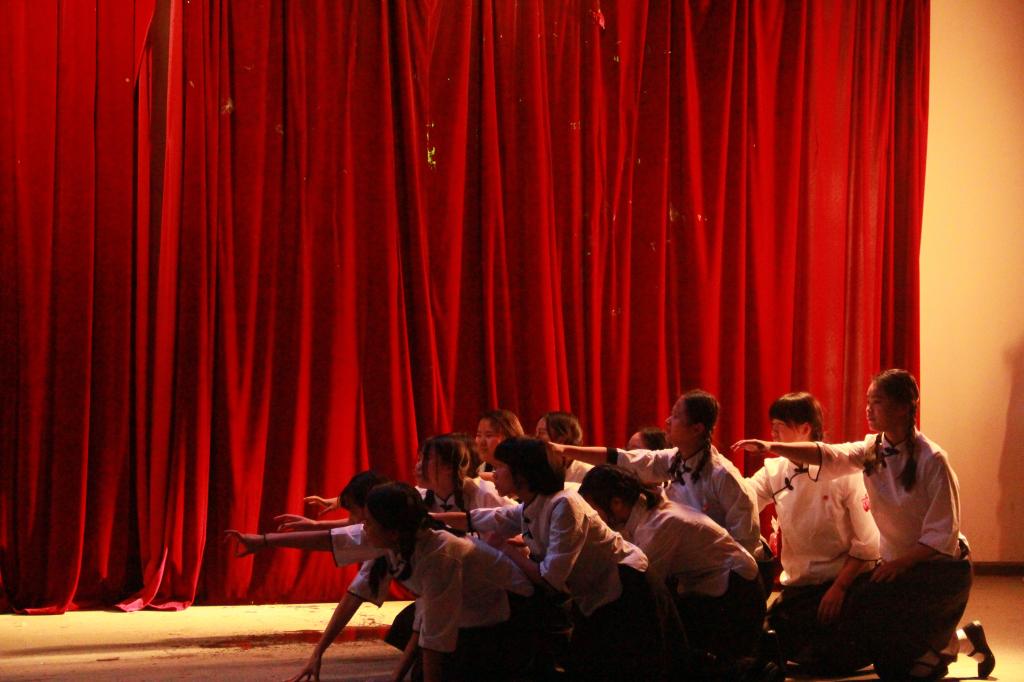 活动正式开始,全体参与人员起立合唱了共青团团歌,主持人紧接着播报了国内外有关民族斗争的重大新闻。随着热烈的音乐响起,由“Daring Dance”舞蹈协会带来的开场舞点燃了现场的气氛。第一个节目《抗日我与你同在》就在这活跃的气氛下缓缓拉开序幕,这是英语201803展示的情景剧。这场表演充分表达了在日军压迫下,员工大无畏的反抗精神和爱国精神,音乐和表演恰到好处的结合让一二九精神直击观众内心深处。在同学们回味之际,宏阔的背景音乐昂扬奏起,文化201802的表演者整齐地站在了舞台上。他们进行了以“做中华少年,谱华夏诗篇”为主题的朗诵,深情并茂地歌颂了祖国的伟大和壮丽。