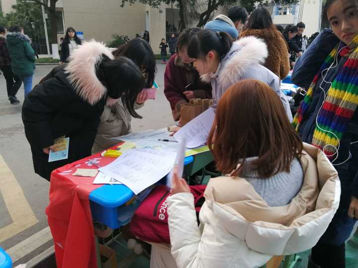 1月28日下午,太阳成集团tyc234cc南山宣讲小队“寒假高中校园行”设点宣传活动在四川省绵阳南山中学高三校区篮球场举行。全队8名成员陈子荻、王羿童、付诗涵、冯斐尧、何希、何明倩、何人可、柳苗苗参加了此次活动,活动由队长陈子荻组织领导,由南山中学老师协调安排。
