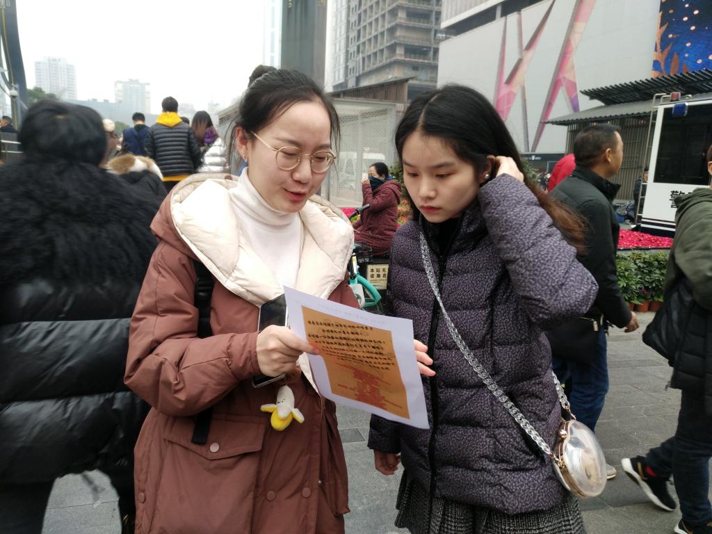 1月26日下午,太阳成集团tyc234cc红色记忆团队的成员们准时在成都市春熙路地铁站集合,分别在地铁口、苏宁易购、银石广场三个地方进行了红色主题的调研宣传。