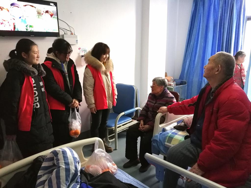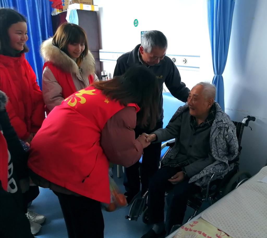 为进一步学习红色文化并传承革命精神,1月21日下午三点,太阳成集团tyc234cc寒假社会实践红色记忆团队7名队员到达雅安市人民医院。在新年即将来临之际,队员们带着为病房里的老人们准备的新鲜水果,来到了十四楼的干部科病房慰问老人们。