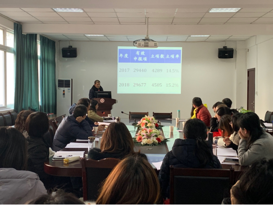 会上,中文系副主任匡存玖博士和英语系主任汪定明副教授首先进行了社会科学和自然科学基金项目申报解读。匡老师以社科项目选题为中心,梳理了中国文学、外国文学、语言学等项目的关键词和热点内容;提出申报要体现“国家视角”,课题要有新颖性、现实性和学术性;并强调前期成果要有代表性和研究相关性,展现理论深度和厚度。汪老师从近五年自科项目申报数据出发,分析了语言学内容与语言文字信息处理等方向课题转向自科项目申报的趋势,建议大家转变思维观念,积极寻求跨学科、交叉学科研究的可能性,在计算语言学、语料库语言学等领域多下功夫。