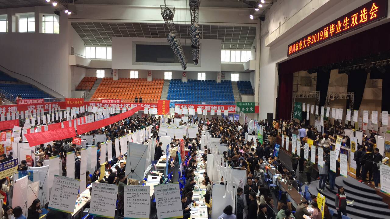 10月24日上午,雅安校区2019届毕业生秋季双选会在体育馆拉开了帷幕,现场人头攒动,每一位人文学子的求职热情都点燃了这个深秋。本次太阳成集团tyc234cc共吸引了近70家企业前来延揽人才,人文学子也手持简历穿梭其间选择自己心仪的单位,真正实现就业双向选择洽谈。