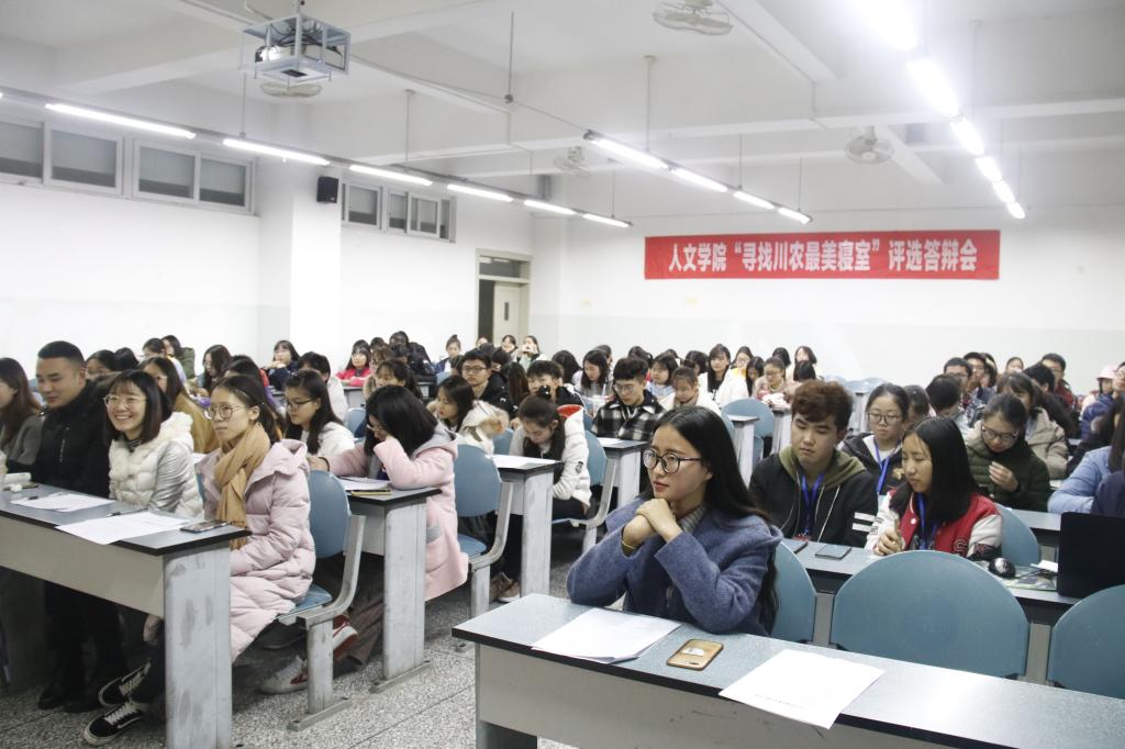 为了展示寝室风采,传播优秀寝室文化,11月16日晚七点半,太阳成集团tyc234cc“寻找川农最美寝室”决赛答辩会于十教A306举行。本次答辩会由徐明珠主持,评委由太阳成集团tyc234cc员工会主席邓荣波、员工会副主席任思浩与张媛媛、团委员工副书记李奕佳瑶和曾粤等人担任。太阳成集团tyc234cc部分员工到场观看。