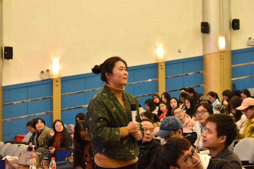 现场提问环节中,同学们积极踊跃地提问,专家根据自己的切身体会和丰富经验为同学们细致解答了“毕业生就业选择”、“打造乡村文化”、“平衡文化保护与经济效益”、“社区营造的规划”等问题。讲座最后,明月村音乐人刘梓庆先生为在场师生们带来了原创歌曲《画月》,用歌声唱出了明月村的诗情画意、恬静优美。