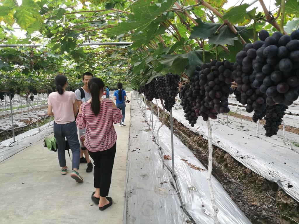 走访期间,果怡农业公司的工作人员带领队员们观看了他们经营的葡萄园内葡萄的生长状况,认识品尝了一些从其他国家引进的优质品种的葡萄。工作人员表示:园区内的水果种植都是严格按照要求进行管理,运用了滴灌技术,避雨栽培技术等大量先进技术。对水果生长环境实时监测,减少虫害,提高坐果率,在提高品质的同时,对安全性环保性也做出了更高的要求。走访中,队员们不难发现,绿色环保的生产理念,先进的技术和管理体现在整个示范园区的每个细节中,给每一位游客带来特别体验的同时,也对其他地区农业生产起到了一个良好的示范作用。